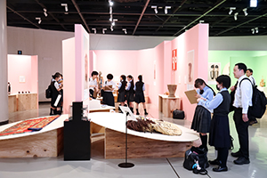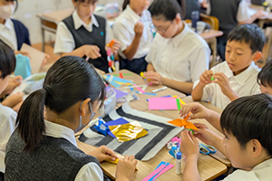 高等学校と合同で実施される文化祭。中学生は毎年学年ことにテーマを決め、展示に取り組んでいます。