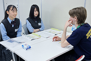 日頃の英語学習や国際理解教育の成果を試します。さまざまな文化を持つ人たちとの交流を通じて、コミュニケーションツールとしての英語力を確かめます。
