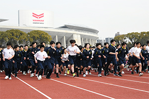 徒歩圏内にある長居グラウンドで実施。高校生と距離は違いますが、全力で自己ベストを尽くします。