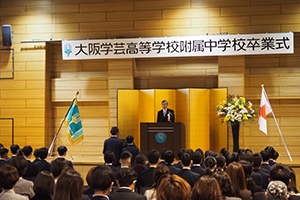 内部進学を中心に据えながらも、あえて6年一貫の方針をとらずに中学3年間のまとまりを大切にしている本校では、卒業式で校長から一人ひとりに卒業証書を手渡ししています。