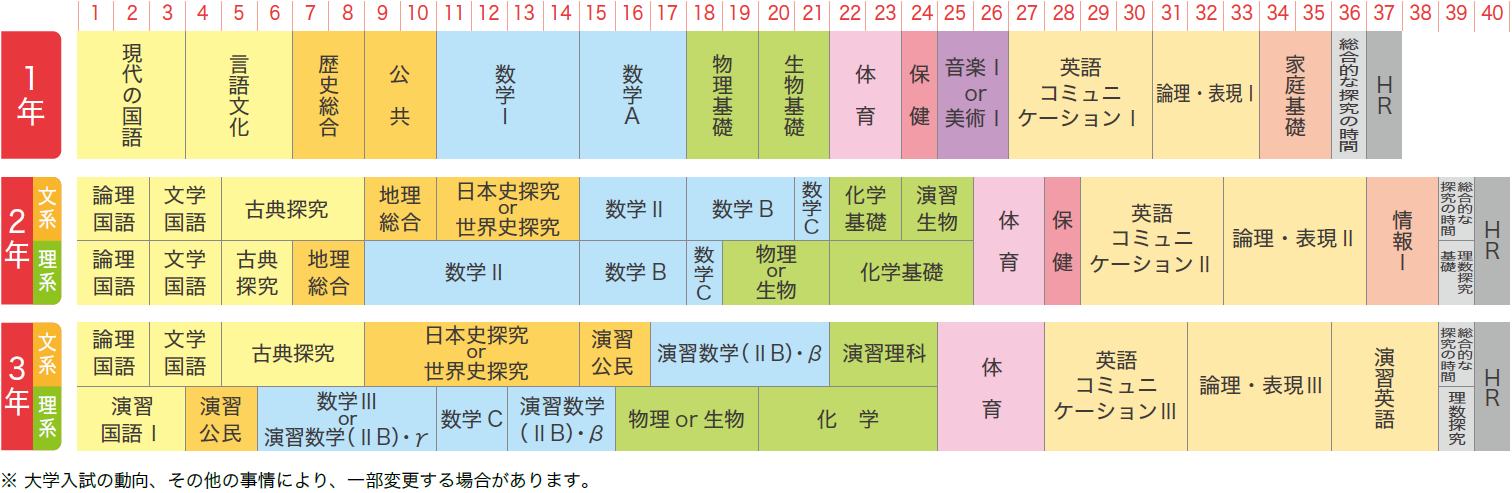5教科型に対応した豊富な授業時間と、多彩な講習で集中学習を行うハイグレードなコースです。2年次より文系・理系に分かれて授業を展開し、丁寧にサポートします。