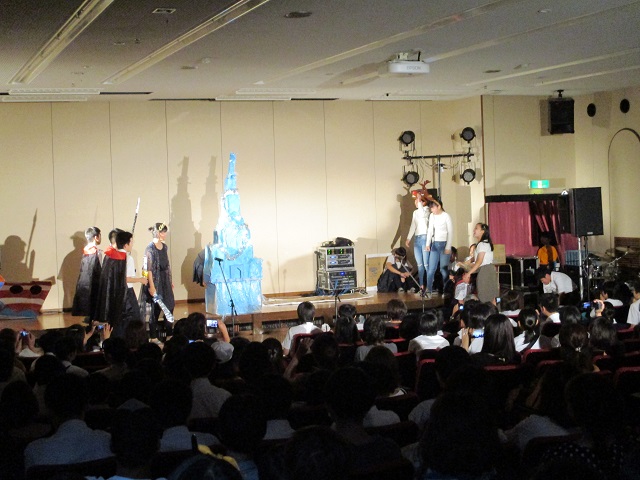 また、附属中学校1年生は体育館で「変わらないもの」「believe」の合唱を行いました。2年生は「ウェブレンジャープログラム」として、SNSの危険性について各班でまとめて展示し、また自分たちで撮影・編集した映像を上映しました。3年生は2グループに分かれて「身近なものでできるアートコレクション」の展示と劇「アナと雪の女王~学芸附属中ver.~」を上演しました。