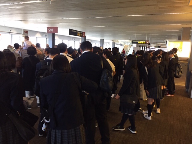 午前8時半にホテルを出発し、シアトル・タコマ国際空港に到着しました。セキュリティチェックを終え、搭乗ゲートに全員、無事に到着しました。